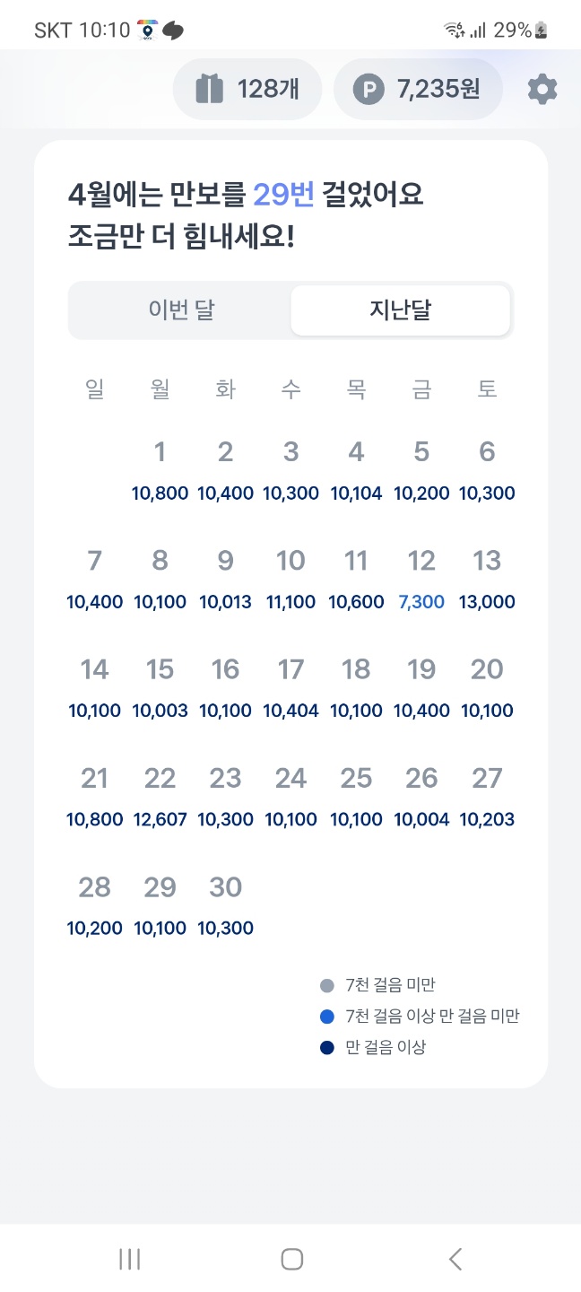 7월인 지금도 만보 걷기는 꾸준히 하고 있으며 7월 접어들어 오늘까지도 매일 만보 이상 걷기는 성공하였다. 며칠 성공하지 못한 날도 있지만 그 다음 날에는 몇 십보라도 더 힘차게 걸으며 새로운 시작을 하였고 꾸준히 걸어서 이렇게 반년의 시간 이상 지속하고 있다는 것에 뿌듯함을 느낀다.