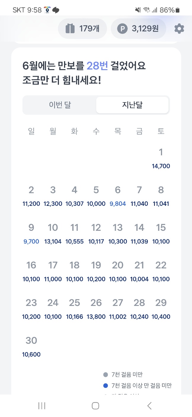 올해 들어 지난 6개월 182일 중177일 동안 하루 만보 이상 걸었다.