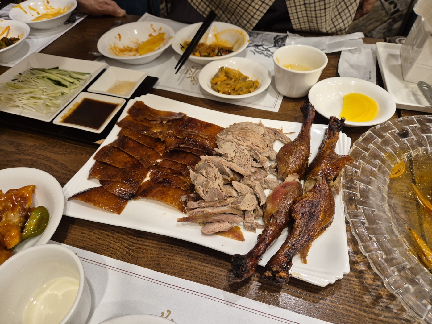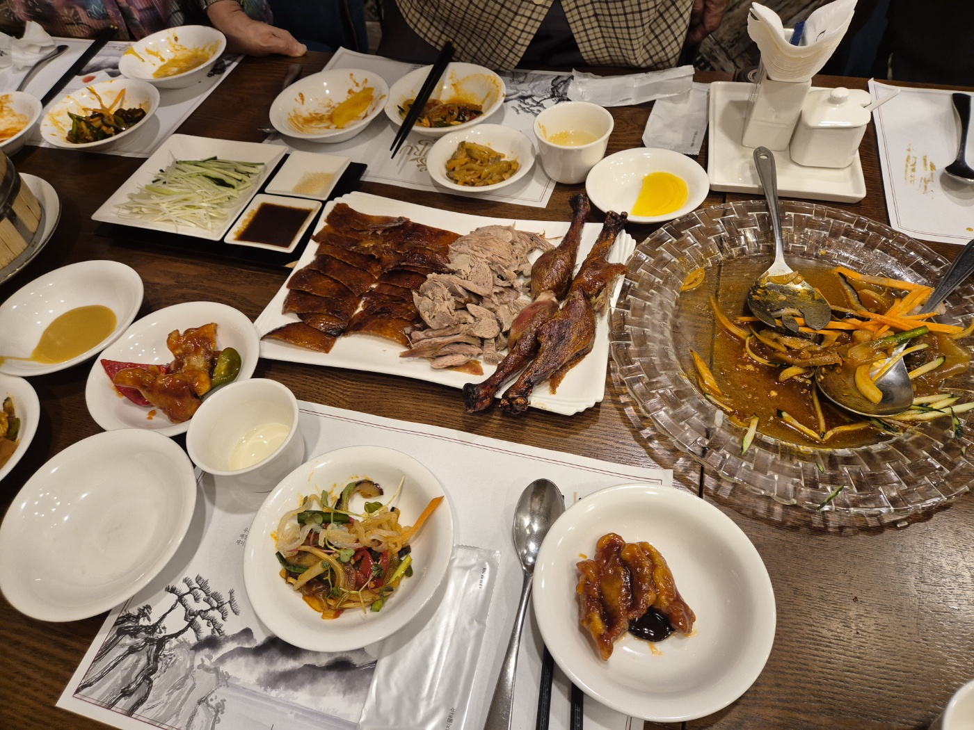 손질된 베이징덕 고기와 껍질을 소스를 찍어서 그냥 먹기도 하고 밀전병에 야채와 함께 싸서 먹어도 맛있다. 아주 특별한 맛은 아니지만 이렇게 특별한 음식을 약간 특별한 포퍼먼스로 메인을 만들어 두는 것이 저녁식사의 묘미라고 하고 싶다. 어쨌든 부모님은 가족이 둘러 앉아 하나의 음식을 나누어 먹는 시간이 즐거우신듯 하였다.