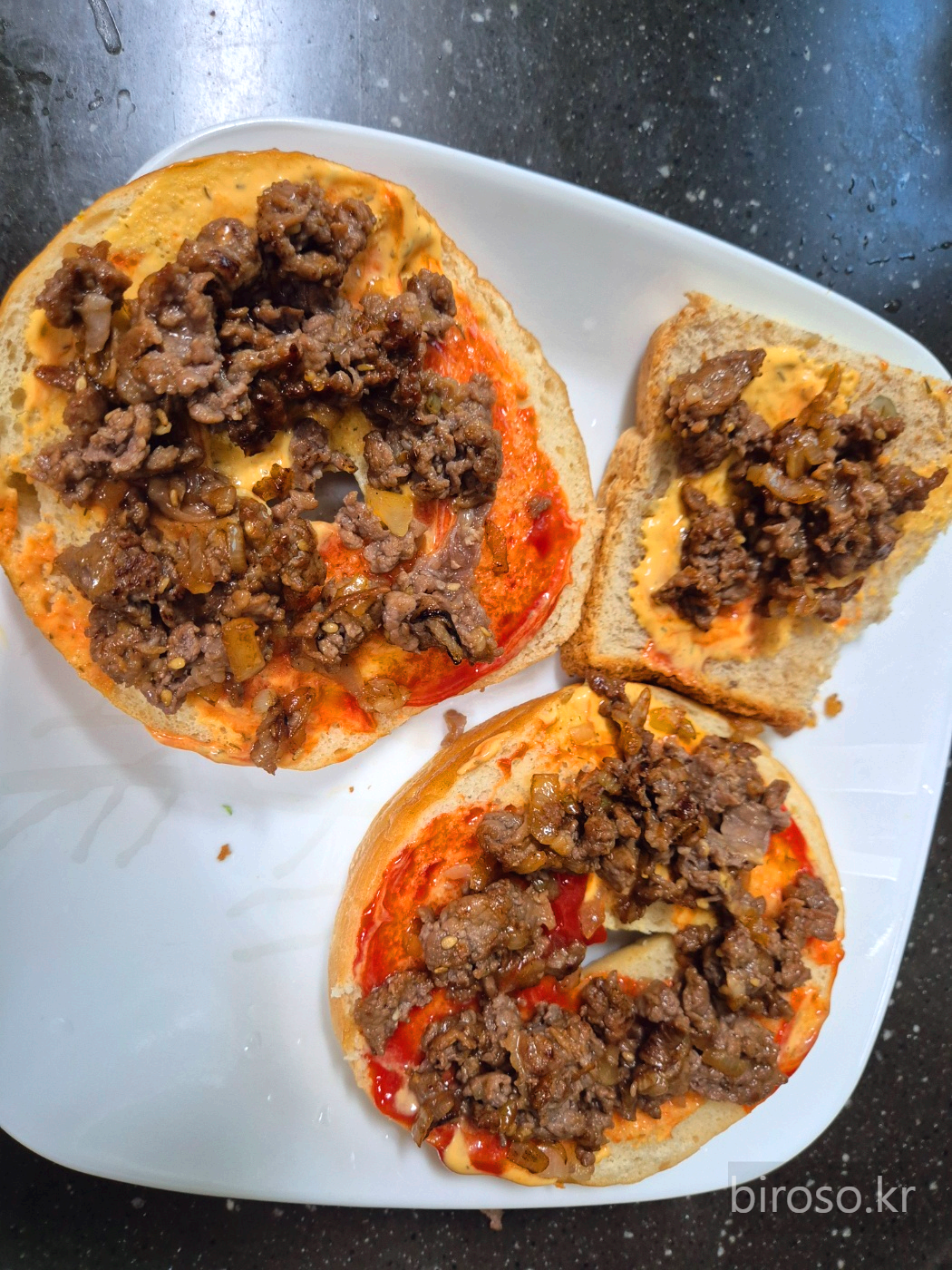 4. 3번 베이글에 볶은 양파, 소불고기를 올린다.