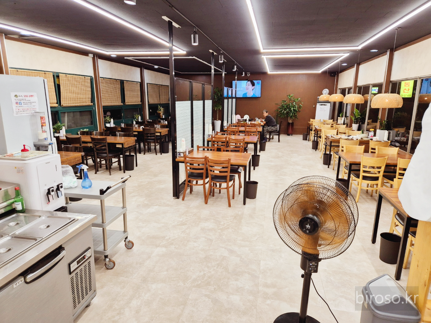 실내는 길쭉하게 되어 있고 가운데 파티션이 있어서 공간 활용이 잘되어 있다.