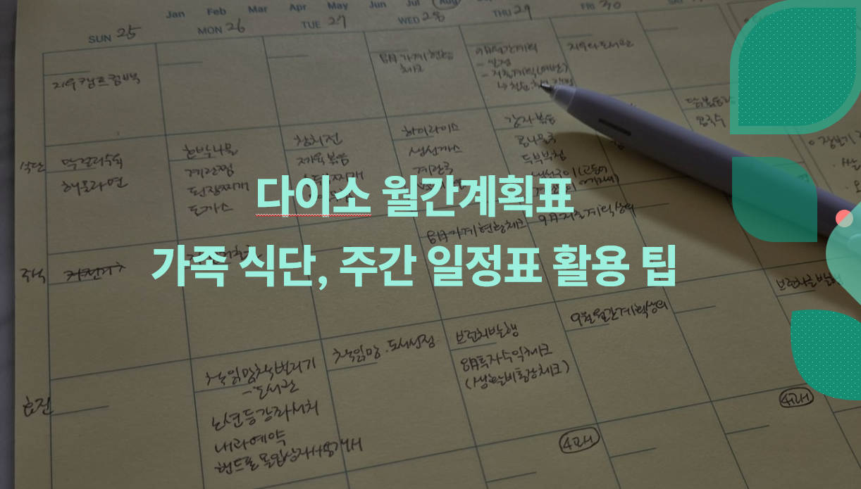 나는 개인 다이어리를 쓰곤하는데 나의 일정과 가족의 일정이 뒤섞이는 일이 많았다. 남편의 출장일정, 아이의 학교 일정, 나의 개인 일정과 가족의 행사 들까지 뒤섞여 있다. 월간 계획표의 작은 칸에 그런 일정이 뒤섞이면 잘 알아보기도 힘들다.