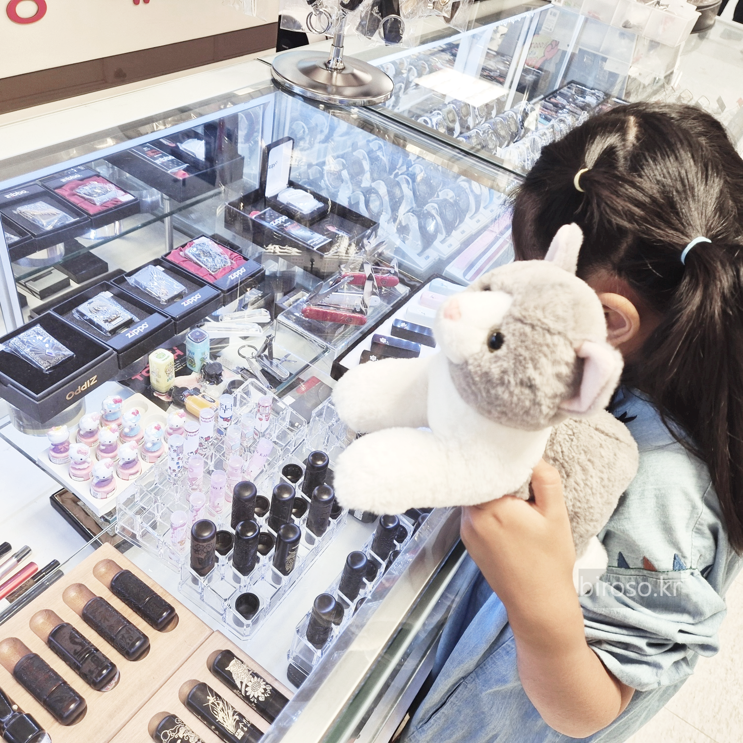 지난달 마트에 갔다가 도장 매장에서 아이 도장을 하나 만들었다. 처음에는 헬로키티를 골랐다가 나중에까지 쓸것을 생각해서 분홍색의 심플한 도장 디자인을 선택했다. 여기에 각인될 문자 폰트를 정하고 바로 이름을 새겨주었다. 아이는 도장 각인이 새겨지는 과정을 지켜보면서 즐거워했다.