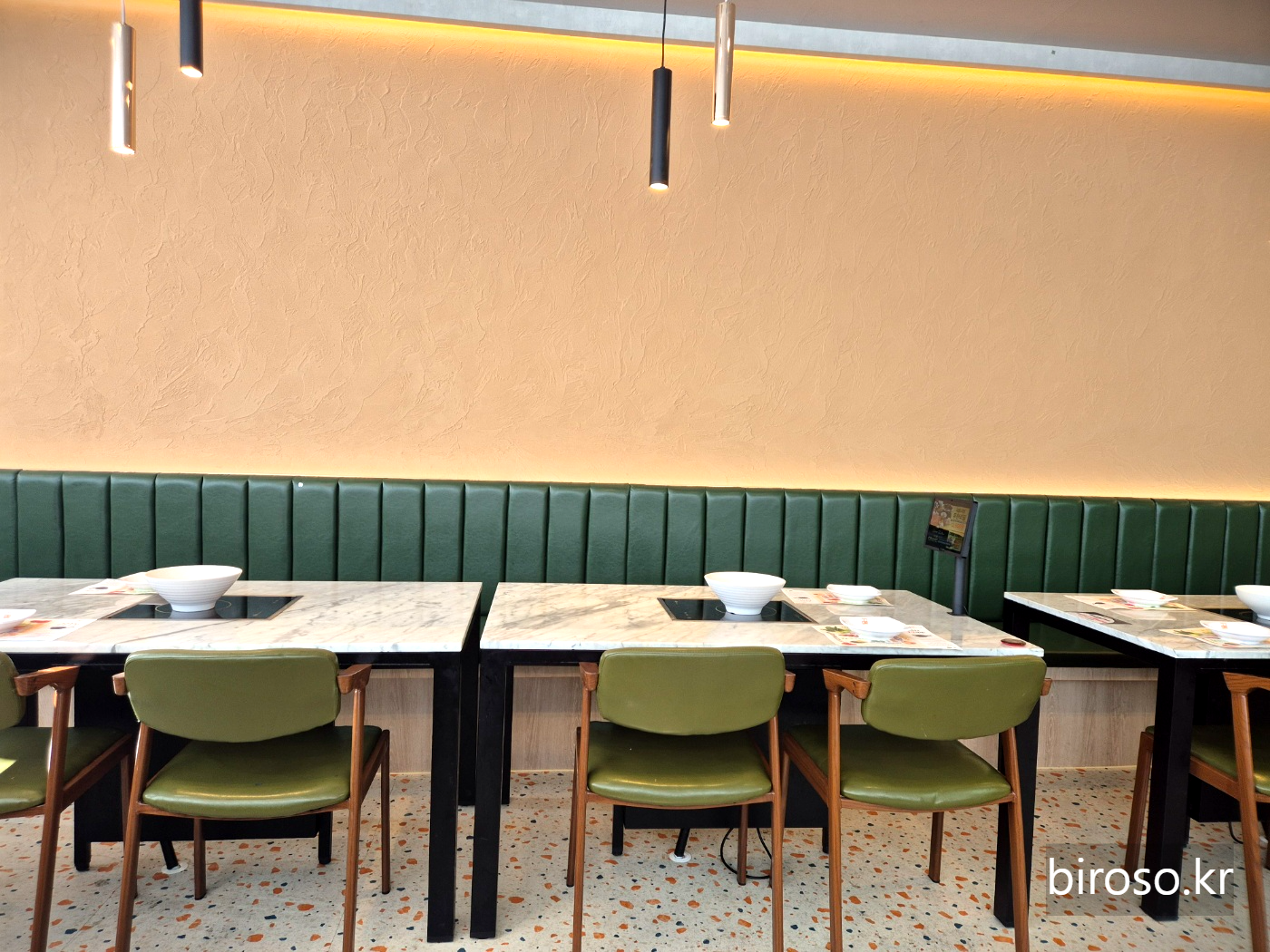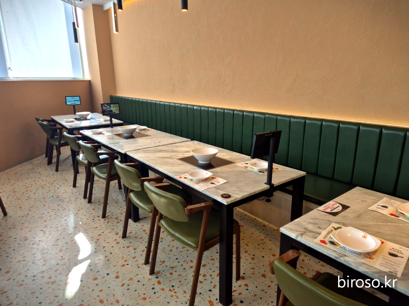 11시 오픈인데 조금 일찍 도착해서 1층 스타벅스에서 이야기를 나누다가 올라갔다. 매장은 새로 연 지 얼마 되지 않아서 깔끔한 편이다. 매장 옆쪽으로 주욱 테이블이 있는데 1인 손님들이 식사를 하였다. 키오스크로 주문을 할 수 있는데 추가금1000원을 내면 육수를 두가지로 나누어서 먹을 수 있다. 우리는 오픈 이벤트로 고기 추가 무료를 받았는데 나중에는 고기도 추가하여 주문하면 된다.