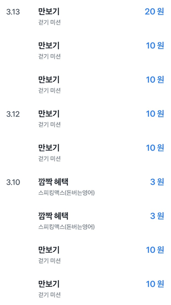 토스 만보기는 1000보, 5000보, 10000보 걸으면 10원, 10원, 20원의 리워드를 준다. 최대 40원을 받는 셈인데 여기에 주변 지정된 지점을 방문하면 보너스를 받을 수도 있고 다른 광고를 보거나 버튼을 누르는 등의 액션이 추가되면 추가 리워드를 주는 방식이다. 이걸 돈을 벌자고 하면 정말 푼돈이라고 할 수 있는데 매일 만보는 걷겠다고 마음 먹으면 알아서 걸음 수를 세우주는데 조금씩 금액이 모인다고 생각하면 그냥 나쁘지는 않다.