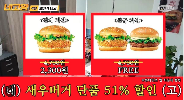오늘도 놀이터를 돌고돌아 네발 자전거 끌고 겨우 롯데리아로 들렀는데 네고왕 포스터가 붙어 있었다. 며칠 전 공개된 네고왕에서 햄버거 네고를 했는데 롯데리아 맴버십 앱을 깔면 네고왕 쿠폰을 주는 형식이다. 앱마케팅의 일환. 아무래도 내용은 가장 인지도가 높은 메뉴로 정했고 신규 회원에게는 무려 무료 쿠폰을 쏘는 행사라 단순히 롯데리아 마케팅이라기보다는 앱사용과 신규회원 유치를 위한 미끼 작전같기도 하다.