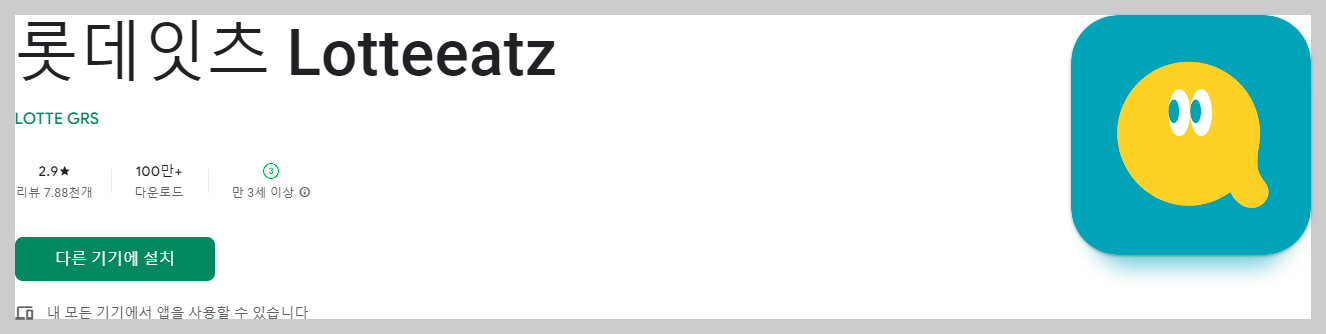 혹시나 하는 마음에 할인 쿠폰을 받을 수 있을까 싶어서 구글플레이 앱스토어에서 롯데잇츠를 다운받았다. (아래 그림을 클릭하면 안드로이드 앱 다운 받을 수 있다.)