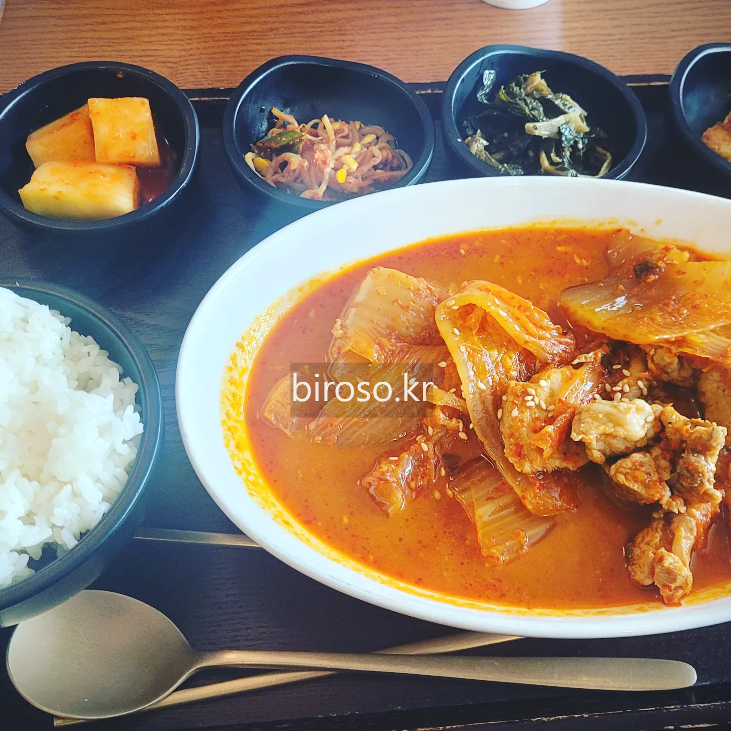 매일 바뀌는 정식인 '오늘의 난' 이날은 돼지 김치찜이었다. 기본 8000원이고 곱배기로 2000원을 추가하여 시키면 양이 거의 두배가 나온다.