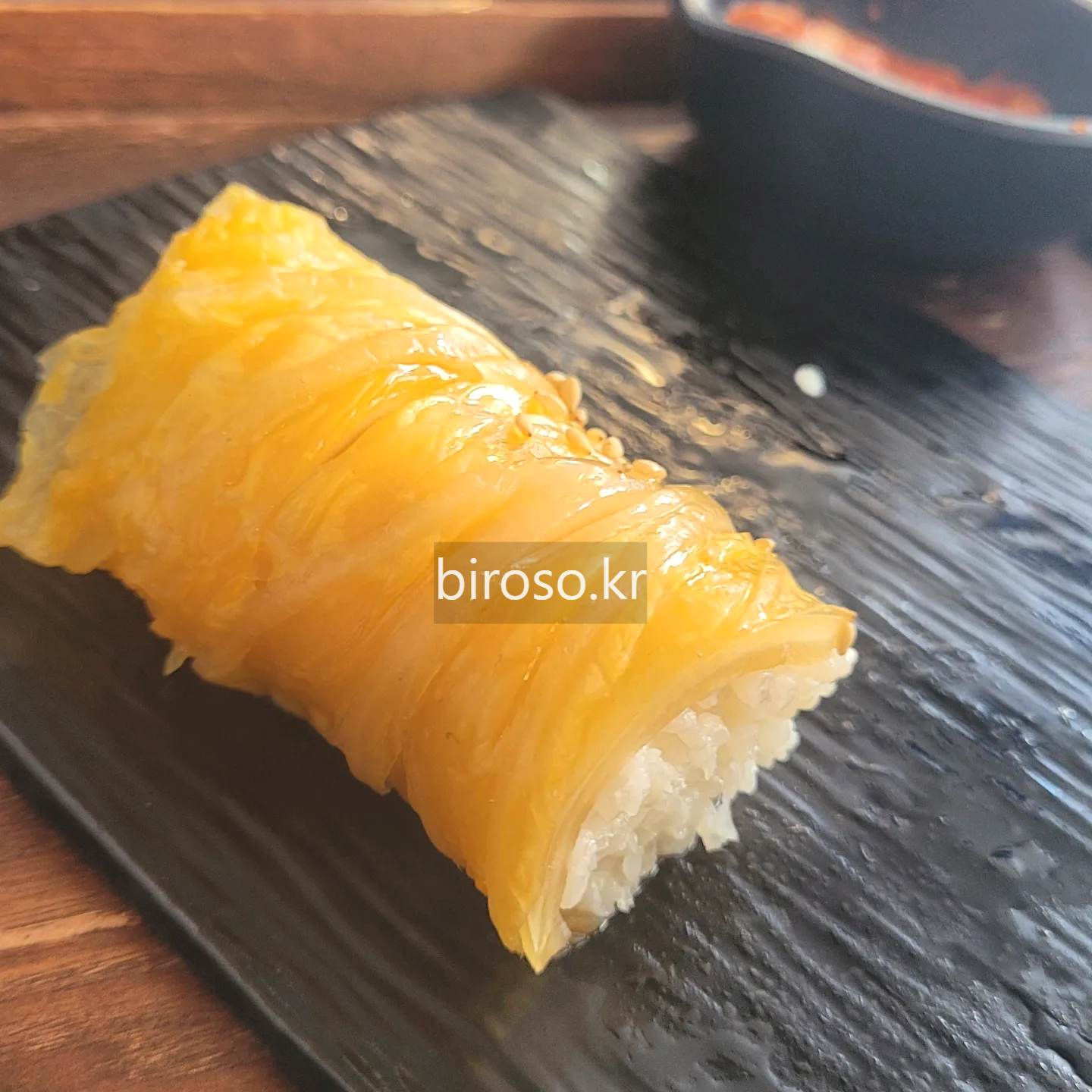 김밥과 세트메뉴라고 생각할만큼 가까운 것이 바로 라면인데 이 집도 라면과 함께 시켜 먹는 이들이 많다. 묵은지 김밥은 색감이 참 영롱하다. 잘 씻어서 나온 황금색 배추에 고슬한 쌀밥이 알알이 씹히고 그 사이사이 고소한 참기름 향이 코를 간지럽힌다. 다녀온 지 조금 지나서 그런지 들기름이었는지도 모르겠다. 묵은지의 쿰쿰한 내는 별로 없고 아삭한 느낌과 고소한 느낌으로 흡사 김밥이라기보다는 따뜻한 초밥을 먹는 느낌이었다. 묵은지 김밥은 5000원.