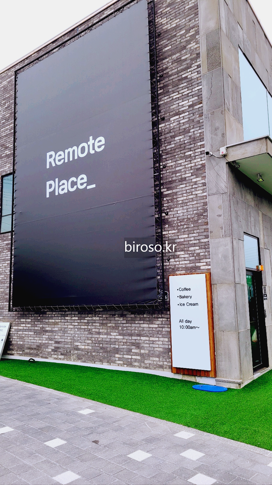 바깥쪽은 인조잔디카펫을 깔아두어서 청량하다.