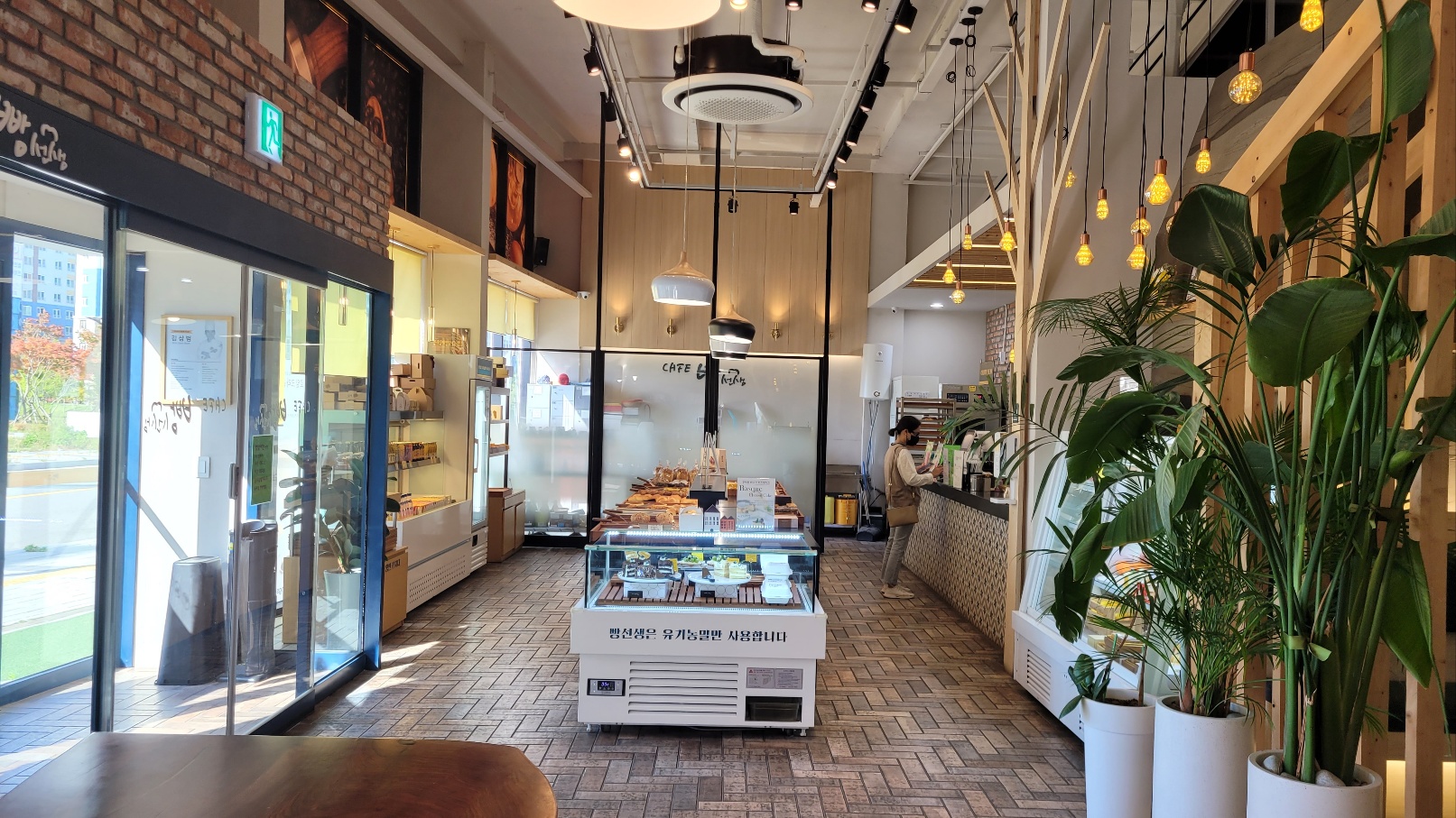 입구에 들어서면 빵을 고르는 진열대가 있다. 빵 가짓수는 많지는 않지만 발효빵부터 케잌류나 쿠키까지 다양하게 있어서 남녀노소 입맛에 맞는 빵을 고를 수 있다. 음료도 커피 종류와 에이드 종류 등 다양하게 준비되어 있다. 일반 카페에 비해 천원정도 비싼 듯하지만 베이커리류는 일반 빵집에 비해 저렴한 편이라고 보면 거의 비슷한 수준이라고 볼 수 있고 멤버십으로 포인트도 적립이 가능하다.