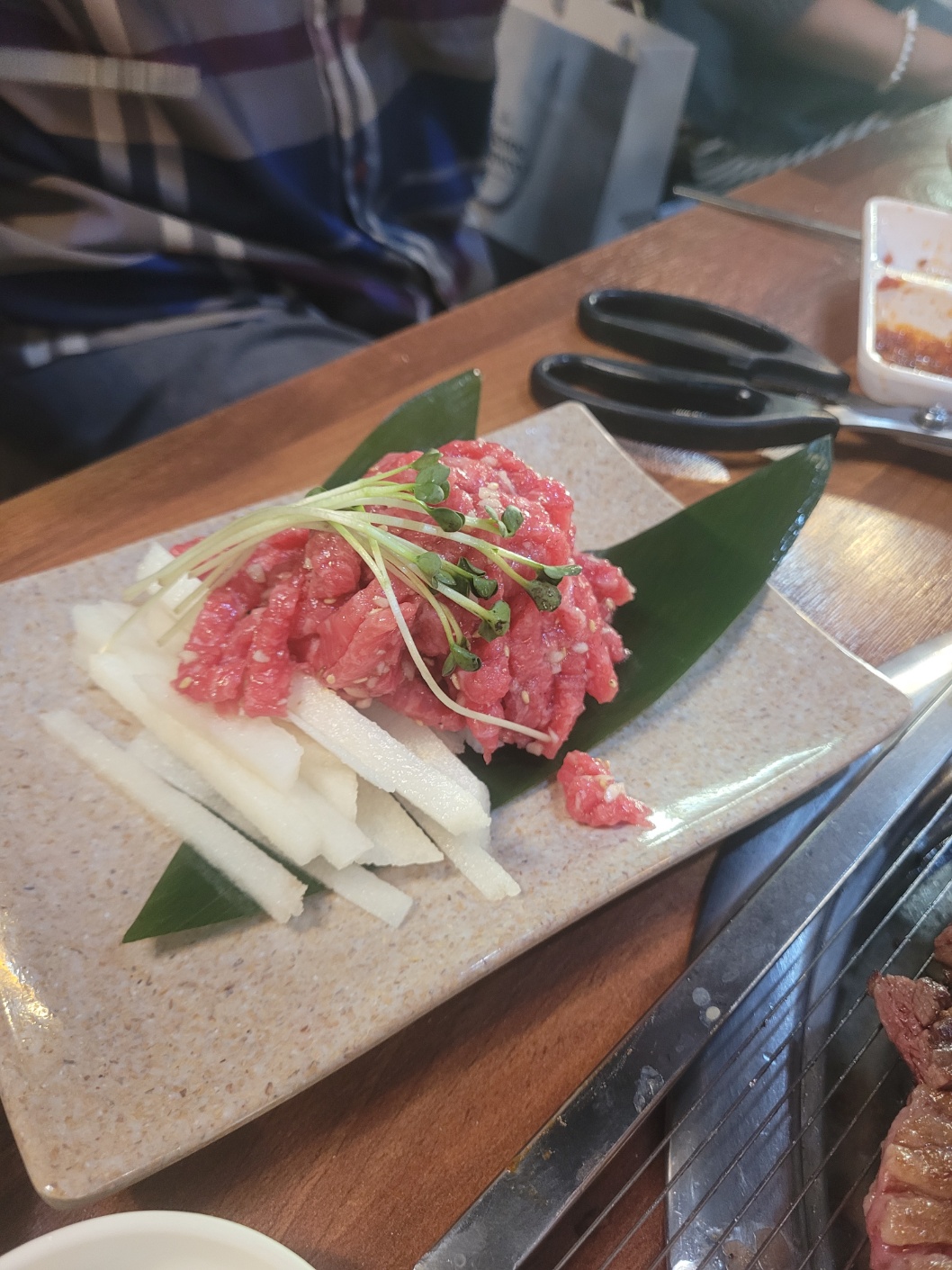 하루 이상 전에 예약하면 서비스로 주시는 육회, 두 테이블이라 두 접시 나왔는데 횡재한 느낌이 들었다.