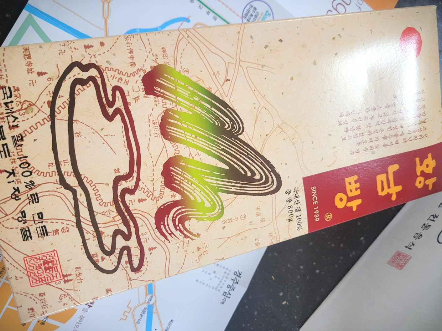 황남빵은  1939년부터 빚어온 빵이니 벌써 85년째가 된다.  앙금이 가득찬 빵인데 국내산 팥100%로 만들었다. 총 중량이 800g이니 황남빵 한개는 40g정도 된다. 반을 갈라서 먹으면 속이 달지 않으면서도 입안에 부드러운 단맛이 도는데 그 맛 때문에 자꾸 입맛이 당긴다.