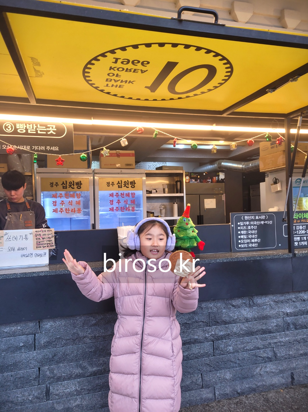 워낙 인기가 있었는데 뒷북인듯 하지만 주욱 늘어나는 치즈와 구수한 빵이 적당히 궁합이 좋았다. 비록 밀가루는 미국산이고 치즈는 호주산이지만 보리는 국내산이라고 적혀있었다. 십원빵은 십원이 아니라 3000원이었다. 호떡처럼 손으로 들고 먹는 것이 아니라 핫도그처럼 막대기에 꽂혀 있어서 롤리팝을 먹듯 주는 것이 특징이다.
