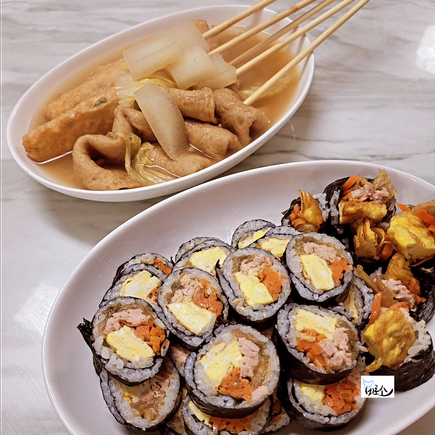 간장 베이스의 국물이 감칠맛이 있어서 우동면이나 국수를 삶아서 함께 먹어도 식사로 손색이 없고, 김밥이나 다른 메뉴와 함께 곁들이면 세상 든든하기도 하다. 또 꿀호떡이나 호빵, 냉동 붕어빵 데워서 함께 먹어도 간식으로 넉넉하게 먹일 수가 있어서 방학기간 하루종일 보내도 뭔가 전투식량 구비한 것같다.