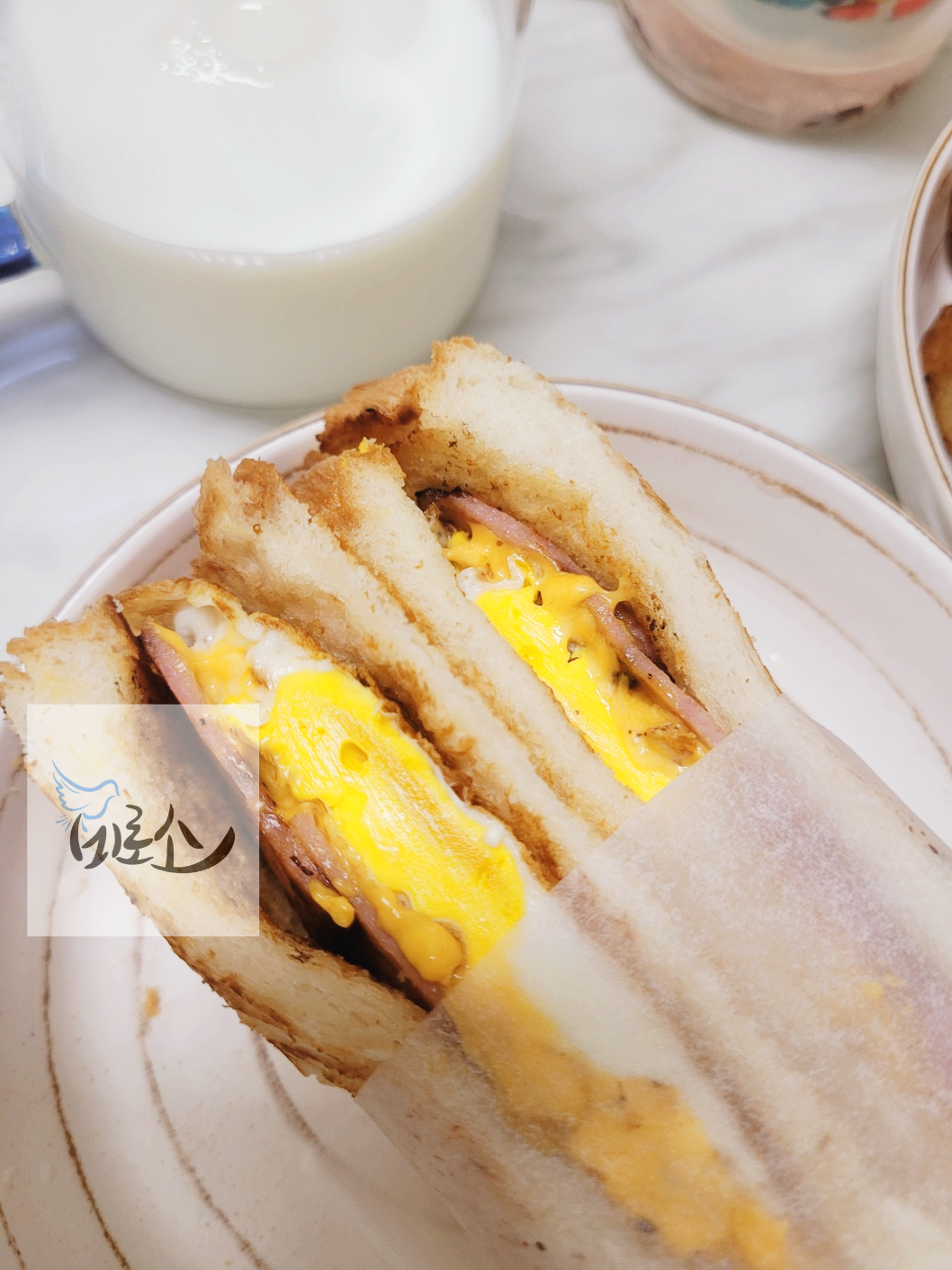 계란이 반숙이면 샌드위치를 먹다가 줄줄 흐르기 때문에 뒤집어 잘 익혀주고 식빵과 햄도 노릇노릇하게 구워주었다.