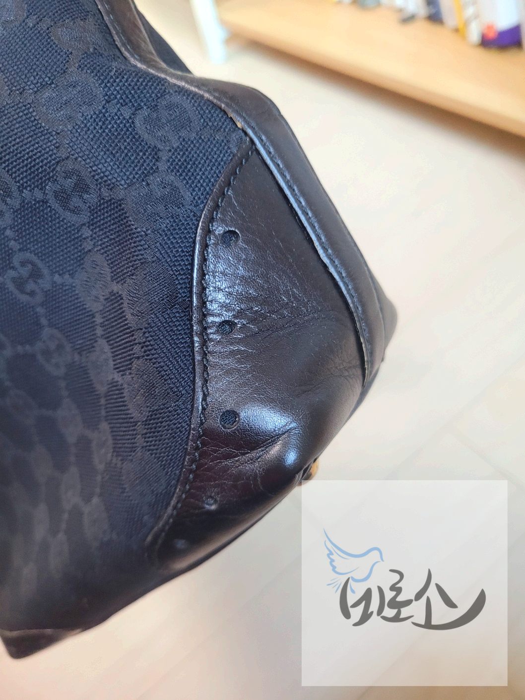 딱 적당한 사이즈의 가방을 발견해서 당근으로 재빨리 구매한 빈티지 구찌 가방이다. 단행본 정도 들어가는 크기에 자가드 부분은 멀쩡하고 금속 부분도 변색이 적어서 들고다닐만 해보였다. 그런데 자세히 보니 검은색 가죽이라 잘 드러나지 않아 판매자 사진으로는 보이지 않았던 마모된 부분들이 눈에 걸렸다.