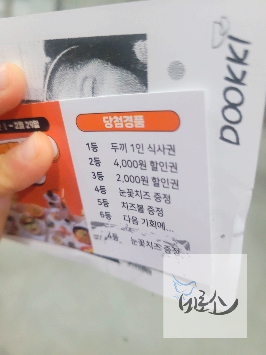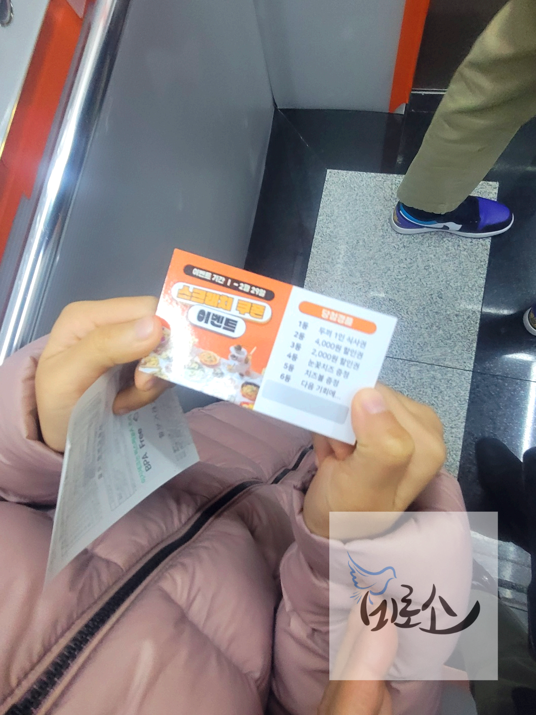 새솔동 두끼에서 스크래치 쿠폰이벤트 즉석 복권을 받았는데 긁어보니....