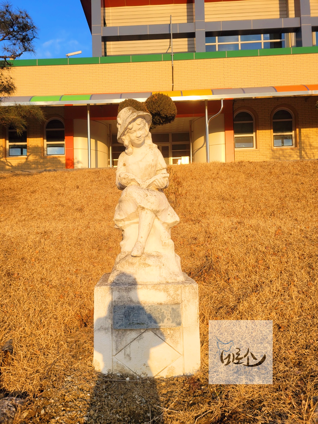 그런데 점점 해가 기울면서 마법처럼 운동장 흙이 금빛처럼 보이는 듯 싶더니 운동장 동상들이 새삼스레 보였다. 초등학교 때 들었던 괴담에서는 초등학교 세종대왕, 이순신 장군, 소녀 동상이 살아서 움직인다는 소재로 다양한 이야기가 전해졌다. 움직임 없는 동상이지만 해가 지면서 만들어내는 빛과 그림자의 변화는 마치 이들 눈동자가 서서히 움직인다거나 자세를 고쳐 서있다거나 하는 착각을 만들었는지 모른다. 아까 이순신 장군이 칼을 어느 손에 들고 있었더라?