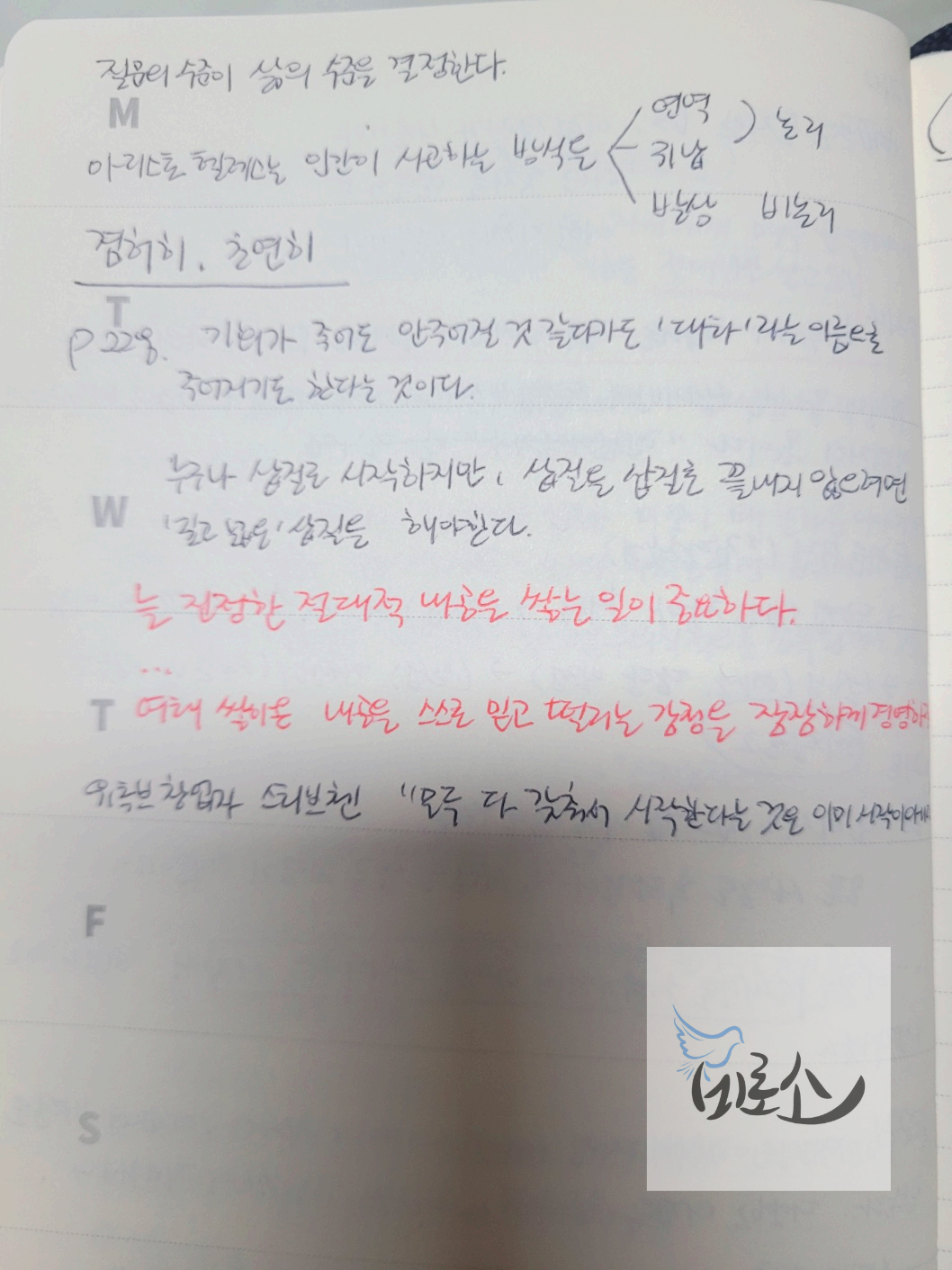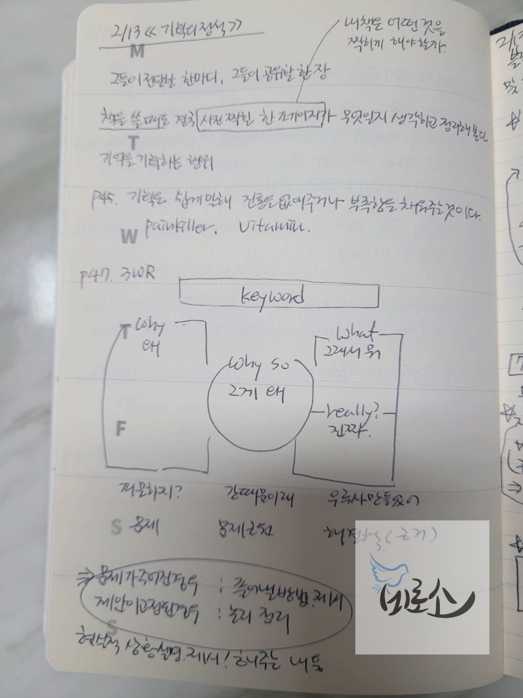 그래서 책을 읽는 중간중간 자신의 소재에 책의 사례를 적용해보려는 시도를 하게 된다. 그래서 강의 필기하듯 나중에 써먹기 좋을만한 것들을 메모하기 시작했다.