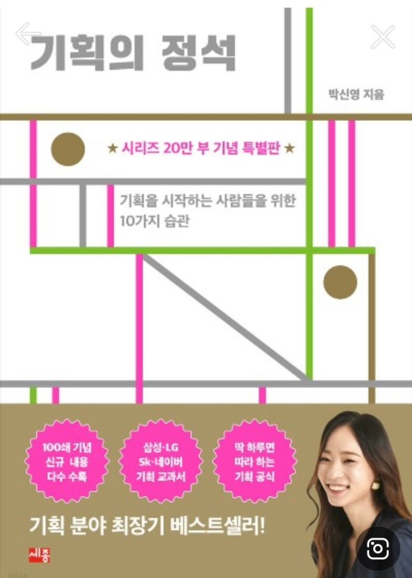 일단 이 책 기획스쿨의 이사 박신영의 <기획의 정석>을 읽고 나면 내가 써야 할 기획서의 주제부터 다양한 생각이 꼬리에 꼬리를 물게 될 것이다. 아무래도 지은이가 공모전으로 혼수를 마련했다는 독특한 이력과 최고 광고기획사 경력에 기획 전문 교육기관에 몸담은지 오랜 시간이라는 내공이 담겨서 그럴 것이다.