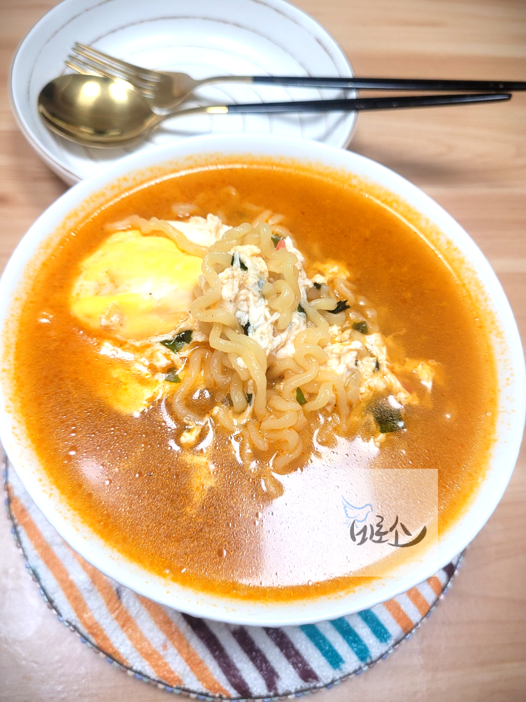 물을 다소 많이 넣었지만 아이가 먹을 것이라 괜찮다. 달걀을 조금 덜 익혀야 좋아하는데 이번에는 조금 익은 것 같다. 아이는 곧잘 먹고 많이 매워하지 않았다. 면발도 탱글거려서 면치기하는 아이의 모습이 귀여웠다.