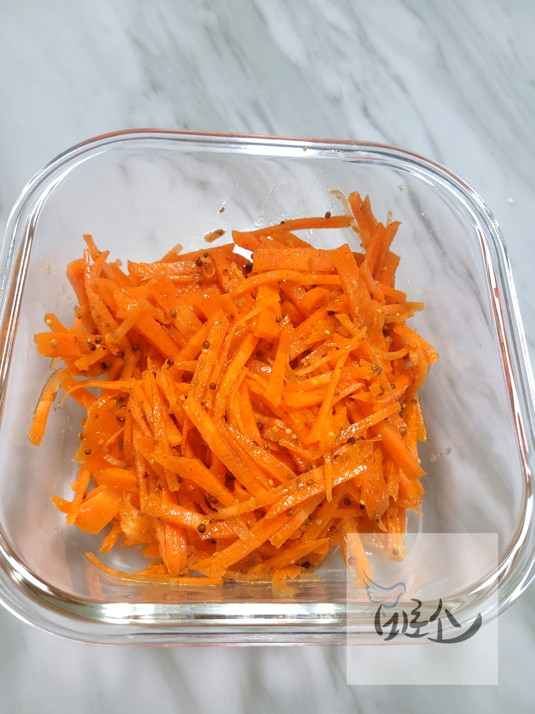 재료는 당근, 올리브오일, 사과식초, 레몬즙, 홀그레인머스타드, 알룰로스(스테비아), 소금이면 된다.