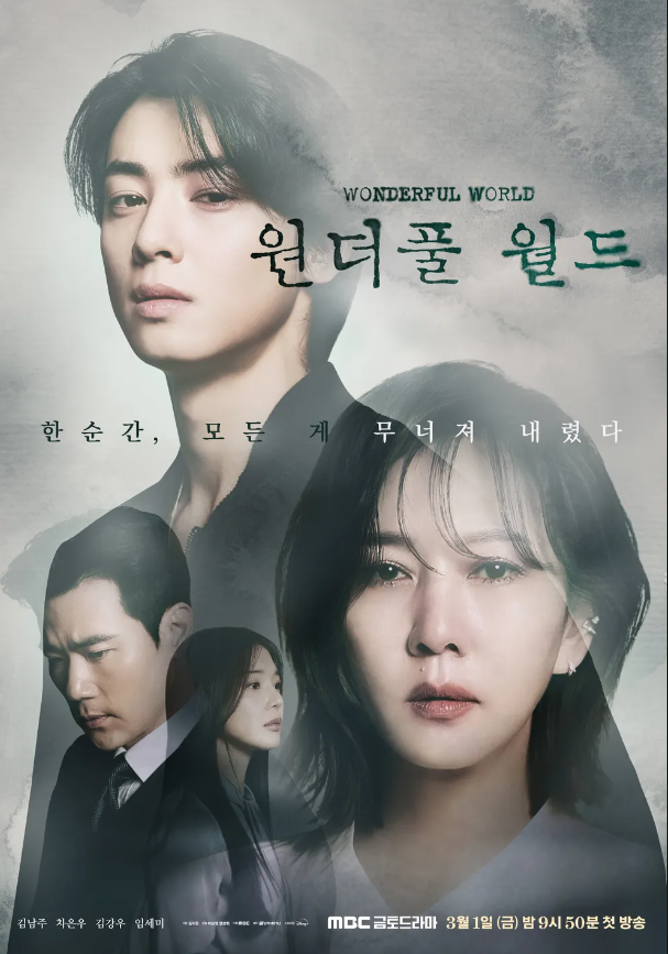 지난 주말 MBC 드라마 <원더풀 월드>가 무난한 시청률로 종영을 맞았다. 김남주의 오랜만의 MBC복귀작으로 홍보에 많이 신경을 썼다. 차은우에게는 그간 맡았던 외모를 내세운 엄친아 역할에서 벗어나 사연있는 캐릭터의 한층 깊이 있는 연기로 좋은 평가를 받기도 하였다.