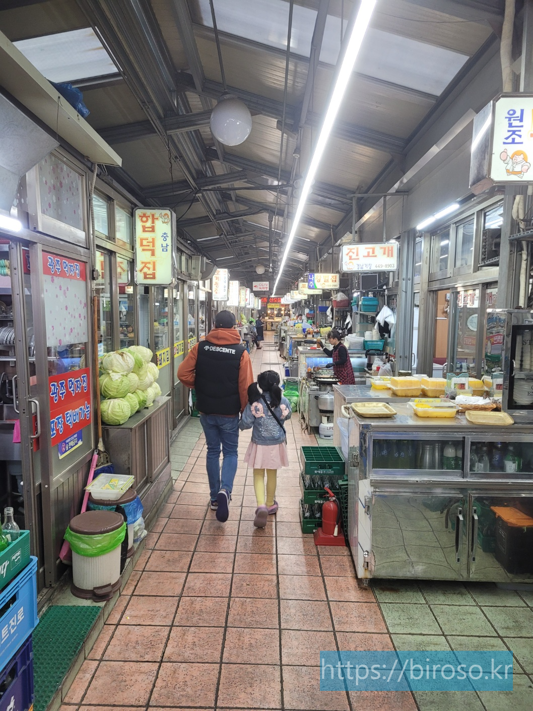 남편과 결혼 전 데이트 할 때 몇 번 갔었던 안양 중앙시장 순대 곱창 골목에 갔다. 아이가 좀 커서 함께 갈 수 있을 것 같아서 오랜만에 함께 가보았다. 골목 안에는 많은 순대 곱창 볶음가게가 있는데 우리가족이 이른시간 들러서 손님들은 많이 없었다. 포장해 가는 손님들도 있고 우리처럼 시장 구경 나오는 가족들, 지인끼리 이른시간부터 막걸리를 곁들이는 팀도 보였다.