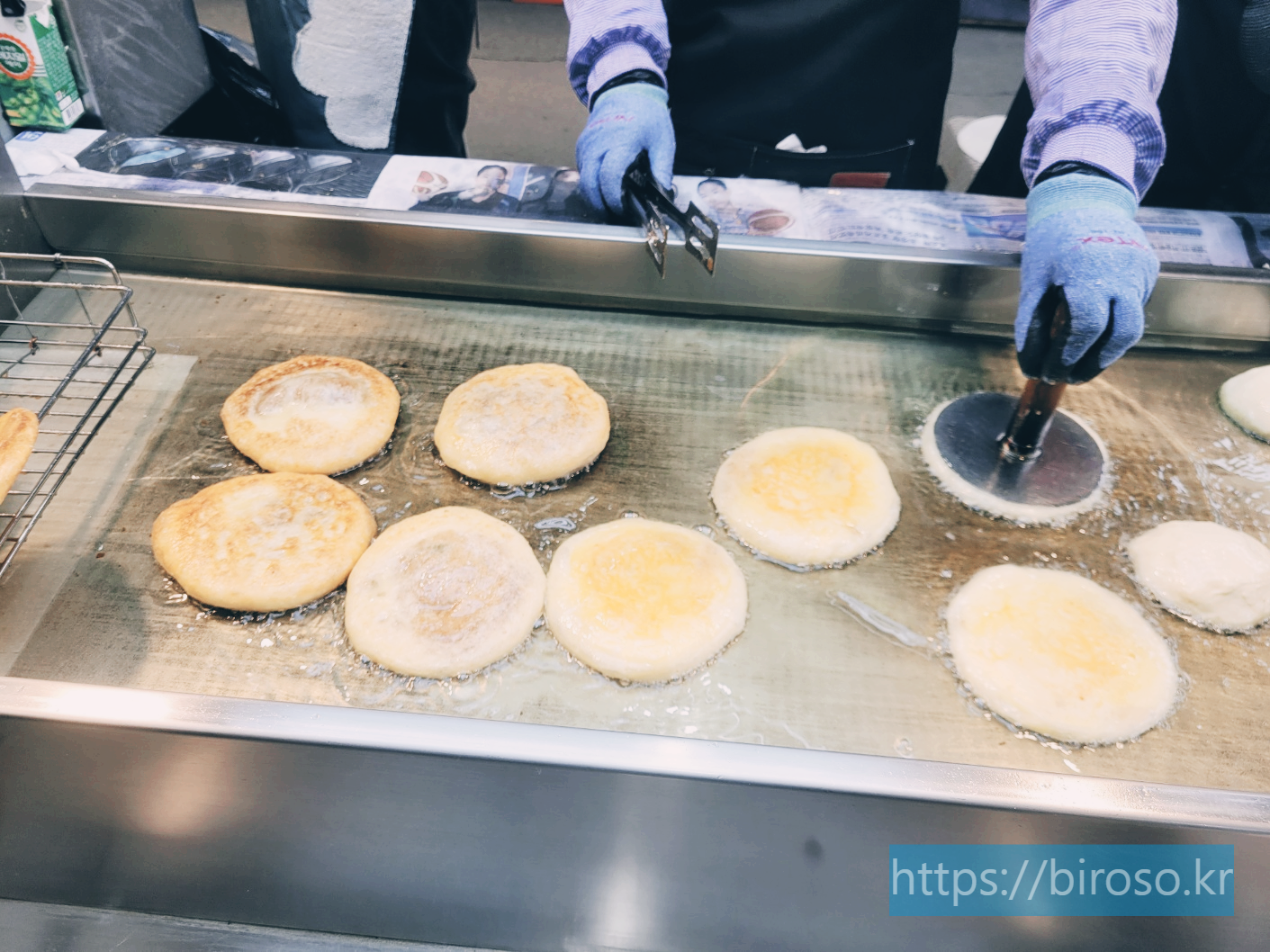 안양 중앙시장 입구를 들어가면 가장 우리를 먼저 반기는 건 호떡집이다. 씨앗 호떡, 매운 잡채 호떡이 각각 2000원 3000원이다. 바로 기름에 튀겨 도너츠처럼 구워주는 호떡은 두께며 크기며 한끼 식사로도 충분할만큼 든든하다. 사진촬영도 반기시면서 잘 나오느냐고 물으셨다.