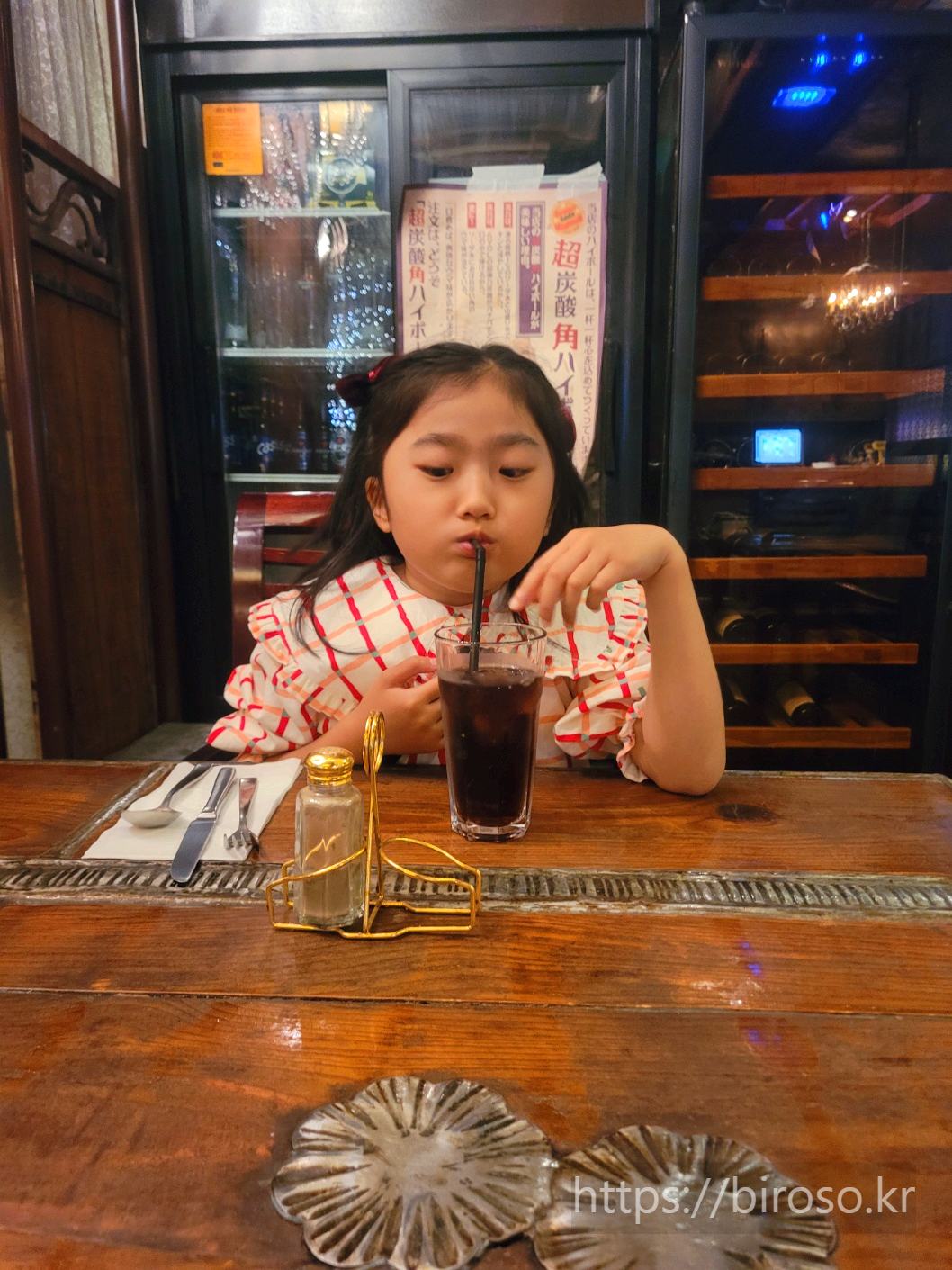 어린이날을 맞아 대우해주기 위해 특별히 제로 콜라도 하나 시켜주었다. 직원분이 센스있게 얼음잔을 두 개 주셔서 아이와 나누어 마시게 해주었다. 돈까스에는 콜라가 역시 잘 맞는다.