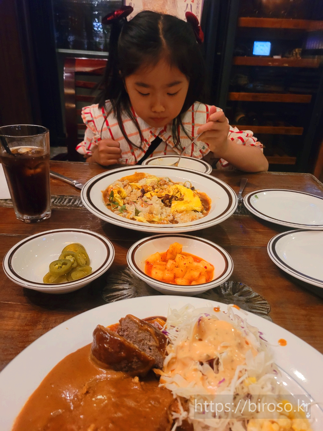 오므라이스도 소스가 특별한 맛이 났다. 아이는 오무라이스를 야무지게 소스와 섞어서 잘 먹었다. 아이 입맛에도 잘 맞는 듯 했다.