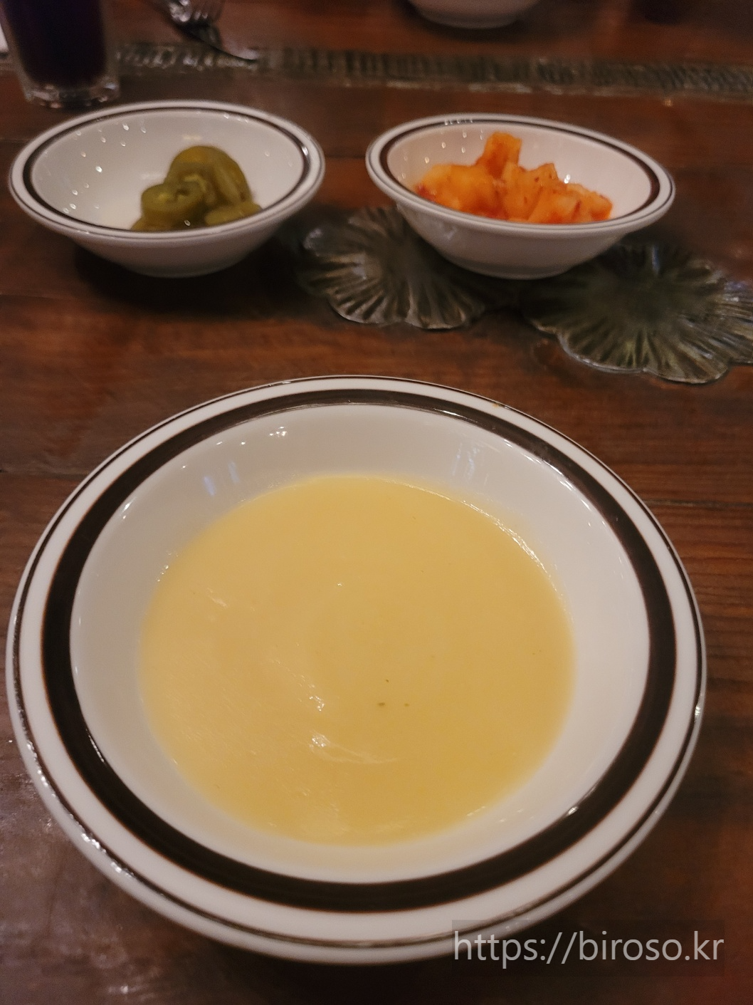 식전 스프가 나왔다. 옥수수스프같았는데 달콤하면서 부드러운 맛이 오뚜기 크림 스프와는 많이 다른 맛이다.