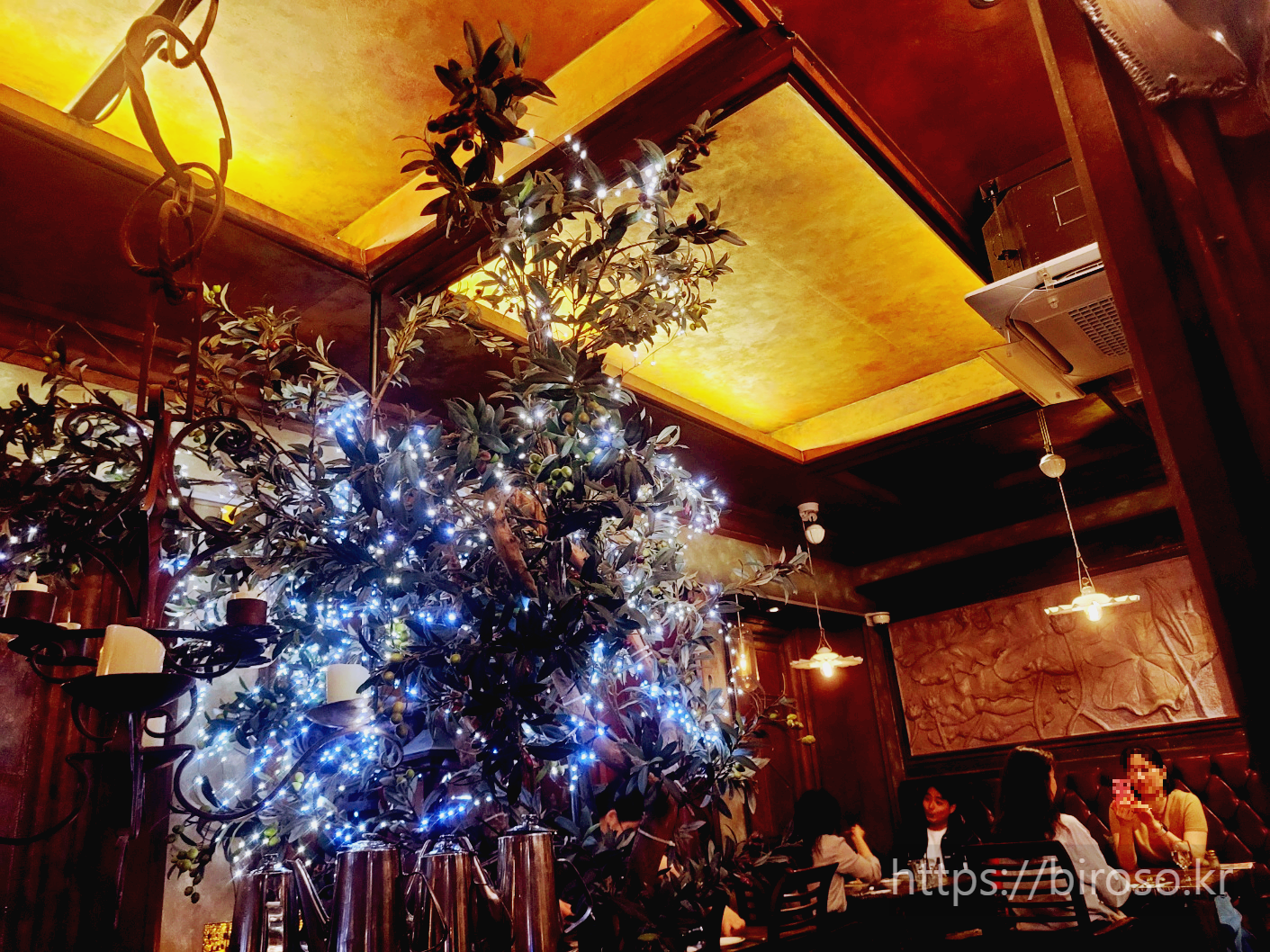 입구 근처에 자리를 잡고 앉아서 내부 안쪽이나 지하, 2층을 잘 둘러볼 기회는 없었지만 붐비는 시즌이나 시간이 되면 이 곳은 많은 사람들을 충분히 들이고 북적북적 나름의 분위기에 젖을만 하겠다는 생각이 들었다. 점심은 한참 지났고 저녁이라기엔 좀 이른 애매한 시간에 갔어도 1층 홀은 다 차있었다. 마침 식사를 마치고 나서는 가족단위 엄마아빠와 아이들을 보니 집에 있는 남편이 떠올랐다.