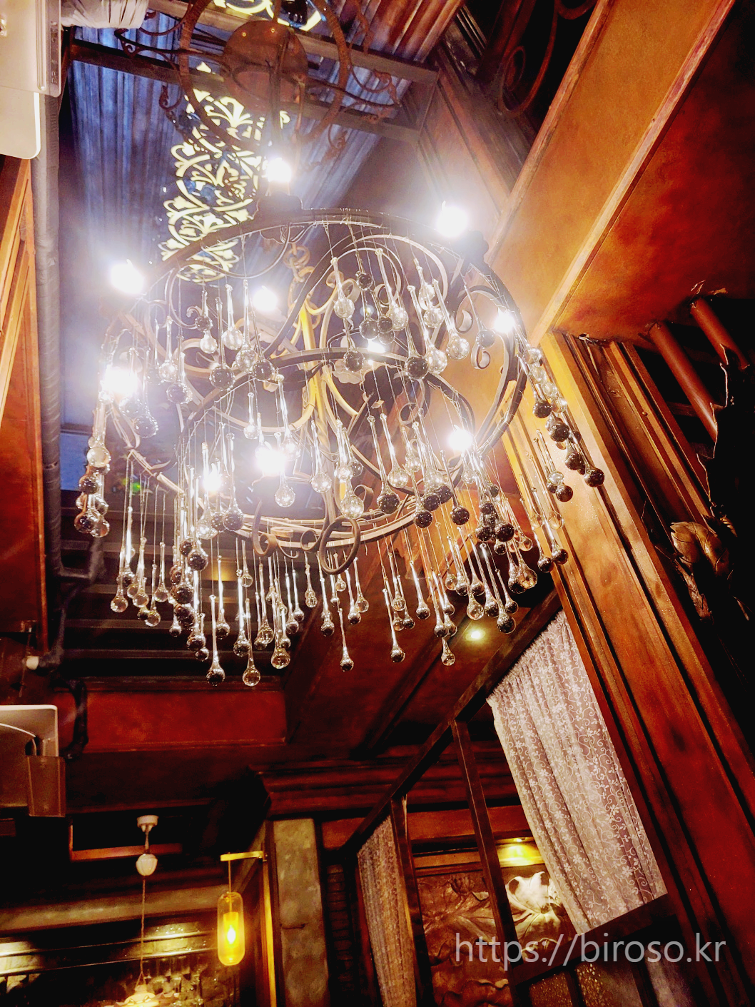 내부 인테리어는 다소 어둡다. 조명은 따뜻한 주황색이고 등이 낮게 걸려있어서 각 테이블의 조명빨이 좋은 편이다. 데이트하고 서로에게 집중할 수 있는 분위기를 만들어준다. 주변의 소품이나 커다란 샹들리에는 특유의 오랜 빈티지 경양식 집의 분위기를 자아낸다.