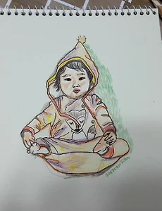 리서치 & 기록/그림책 project11 [응개응개] 연습2. 발을 잡고 누워 응시하는 진주 [응개응개] 연습2. 발을 잡고 누워 응시하는 진주 이번 주에도 그림책 연습으로 진주를 그렸습니다. 이번에는 검은 색 펜으로 윤곽선을 그렸습니다. 잘 스며드는 도톰한 스케치북이라 펜의 잉크가 제법 진하게 베어들었습니다. 색연필만 사용할 때보다 또렷한 모습이라 눈에 들어옵니다. 크기도 지난 주보다 작고 몸 전체를 그려보았습니다. 나중에는 색연필로 화면 전체를 충실하게 채워보고 싶습니다. 문화기획자 리타의 feelsophy 2017. 1. 11. [응개응개] 연습1. 잠들기 직전의 진주 [응개응개] 연습1. 잠들기 직전의 진주 그림책을 위해 그림 연습을 시작합니다. 일단 리타가 그림에 흥미를 가지고 자주 그리는 버릇을 들이는 것이 필요할 것 같아요. 계획하고 있는 그림책에 들어갈 그림들은 봄부터 기획해봐야겠습니다. 그래도 제목은 정해졌어요. 우리 진주가 울 때 '응개응개'하고 우는데 그 특이한 의성어를 제목으로 하려고 합니다. 색연필로 그렸습니다. 잠들기 직전 눈을 껌뻑거리는 진주의 모습을 그렸습니다. 카펫을 표현하는 것이 어려웠어요. 머리를 묶으니 더 귀여워진 진주 문화기획자 리타 2017. 1. 11. 이전 1 2 다음