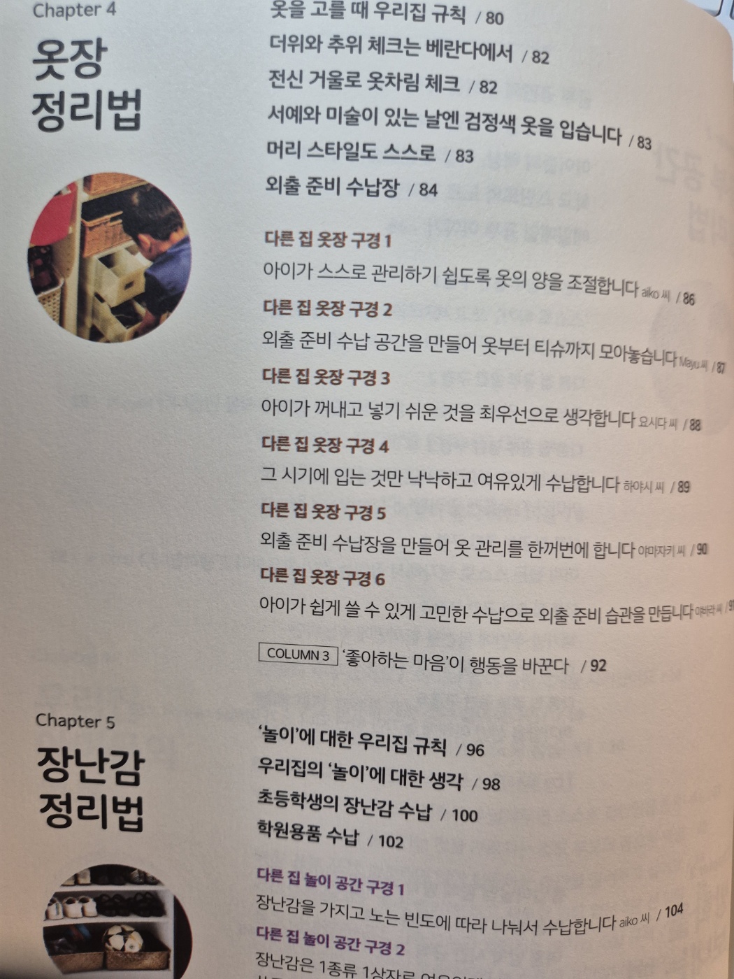 <우리아이 정리교육법>은 충실한 사진으로 보여주어 글이 많지 않다. 잡지처럼 쉽게 필요한 부분만 보거나 사례를 통해 우리집에 적용할 수 있는 아이디어를 얻는다.