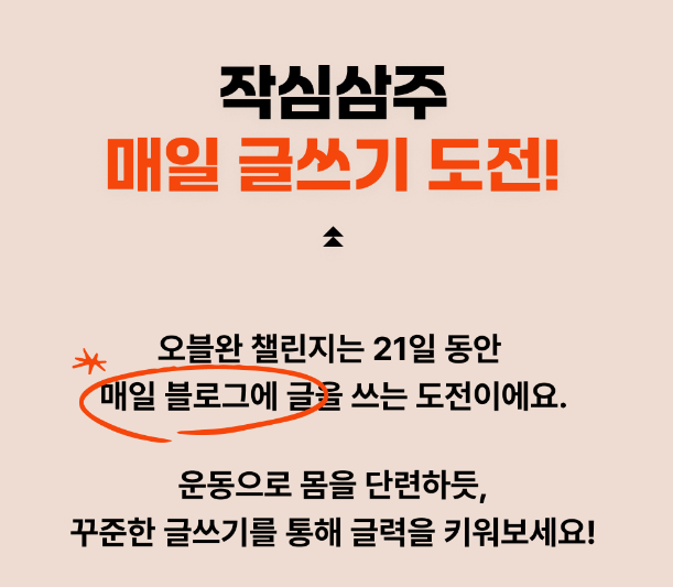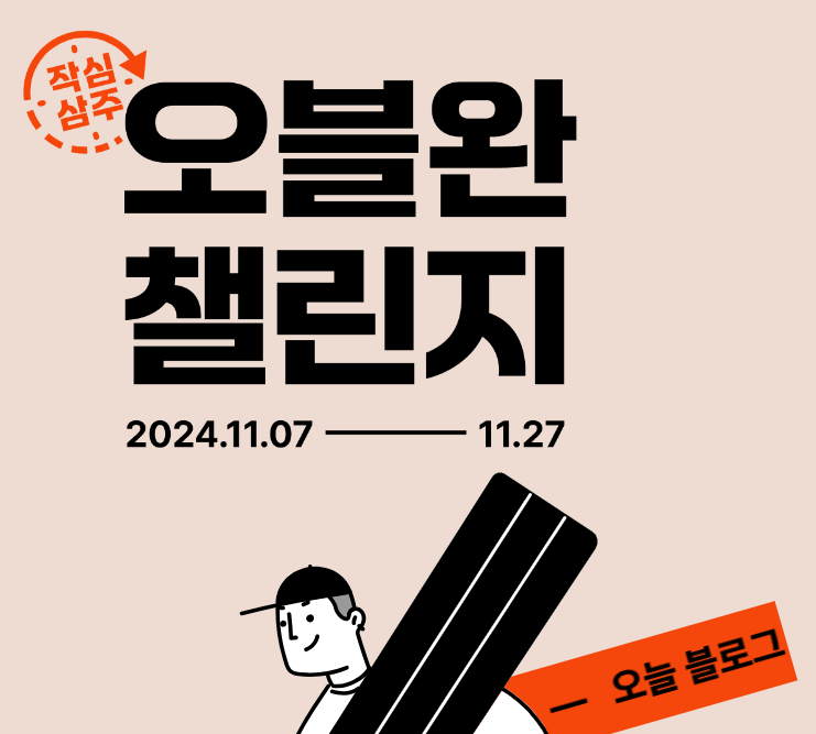 3주간 매일 블로그를 쓰는 습관을 만드는 오늘블로그완료 챌린지가 11월 7일 시작된다. 중간 미션 달성마다 구미가 당기는 상품이 주어지는만큼 이 기회를 통해 매일 자신만의 이야기를 기록하는 습관을 들여보면 좋을 것 같다.