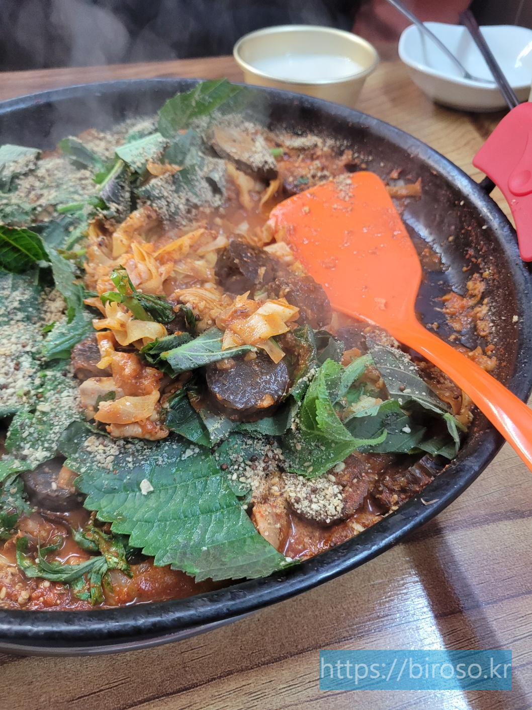 우리가 들어간 집은 예산집인데 사장님이 아이가 매운걸 못먹으니 순대만 따로 주셔서 감사했다. 아이는 이미 씨앗 호떡을 먹어서 순대곱창 볶음에는 큰 관심이 없었다. 우리 부부는 반갑기도 하고 이집이 예전 그집이었는지 기억을 되새겨 보기도 하면서 실내를 둘러보기도 하였다.