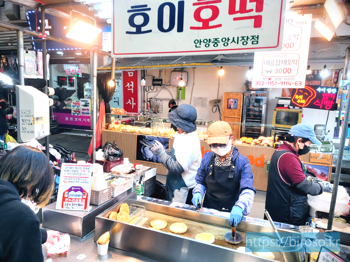 안양 중앙시장에서 호떡 외에도 붕어빵, 떡볶이, 김밥, 순대 등 다양한 분식이 있어서 식사를 미리 하지 않고 들러보면 골라 먹는 재미가 있다.