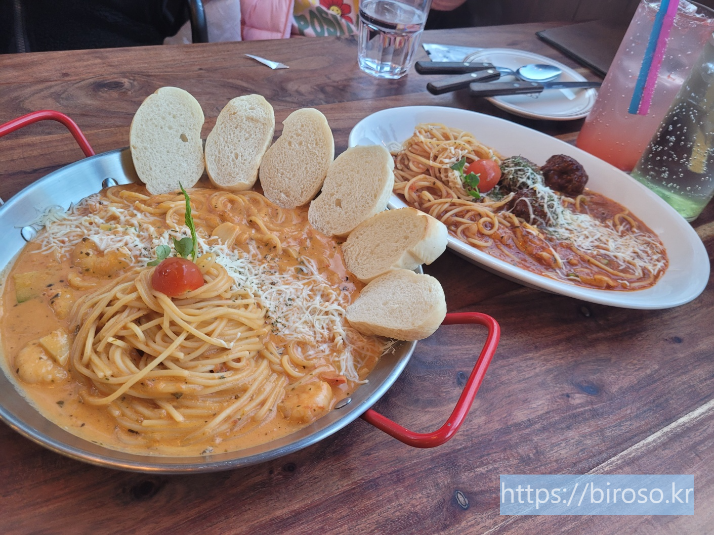 우리는 에이드 두개, 스테이크, 파스타 두가지를 시켰다. 종종 피자나 리조또를 시키기도 하는데 대부분 맛이 괜찮은 편이고 양도 적당하다. 아이들이 많이 좋아할만한 메뉴고 아이들을 위해 막대사탕을 선물로 주기도 해서 아이데리고 외식하기 좋은 곳이다.