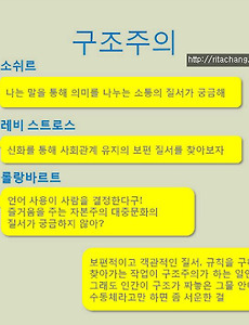 반응형 구조주의4 [교양인을 위한 구조주의 강의] 푸코, 바르트, 레비스트로스, 라캉 쉽게 읽기 교양인을 위한 구조주의 강의 푸코, 바르트, 레비스트로스, 라캉 쉽게 읽기 교양인이 되기 위해 공부하다가 구조주의를 들여다보는 중에 만난 책입니다. 표지에 적힌 푸코니 바르트니 라캉이니 하는 이름만 들어도 머리가 아찔한 것이 흡사 고등학교 시절 물리과목에 나오던 과학자를 대할 때의 그 것입니다. 우치다 타츠루는 입문서로서 구조주의를 설명하기 위해 이 책을 썼다고 밝힙니다. 그래서 책의 내용은 마치 소설을 읽듯, 한사람한사람의 구조주의학자들의 생각을 이해하게 됩니다. 구조주의가 우리에게 주는 시사점은 우리 주변의 모든 것에서 의미체계를 찾도록 만들었다는 점이 아닐까 합니다. 그래서 각 시점의 몇몇 학자들이 내놓은 여러 연구들을 찬찬히 들여다 보면 우리가 살고 있는 지금의 세상을 좀 더 잘 볼 수도 있지 않.. 2015. 4. 22. 공대여자, 구조주의 레비-스트로스가 궁금해요. 공대여자, 구조주의 레비-스트로스가 궁금해요. 인문학에 빠진 공대여자, 구조주의 (3) 구조주의로 문화를 읽기, 레비스트로스에 대해 알아볼까. 레비스트로스는 문화인류학자입니다. 그래서 문화 연구를 공부할 때 빼놓을 수 없는 중요한 인물이 레비스트로스인 셈이죠. 그는 소쉬르의 언어를 들여다보던 관점을 문화로 확장하고 체계를 이루는 각각의 요소들의 가치보다 그 것들이 어떻게 서로 결합하는 가를 중요하게 생각한 구조주의학자입니다. 레비스트로스의 구조주의 연구에서 주로 이야기 되는 것은 두 가지입니다. 하나는 근친상간의 금지를 이유로 친족의 범위를 정하게 되었고 이러한 씨족이나 가족 간의 여성의 교환이 이뤄졌다는 내용으로 커뮤니케이션의 구조를 다룹니다. 다른 하나는 신화에 대한 구조적 연구를 통해 신화의 요소들.. 2015. 4. 22. 공대여자, 구조주의 소쉬르가 궁금해요. 공대여자, 구조주의 소쉬르가 궁금해요. 인문학에 빠진 공대여자, 구조주의 (2) 구조주의의 시작, 소쉬르에 대해 알아볼까. 국어시간이 생각납니다. 시와 소설을 읽거나 문법을 공부했었죠. 그때 소설의 흐름에서 발단전개절정결말이라든지 복선이라든지의 이야기를 듣습니다. 또 시상이 무엇이고 어미를 맞추는 정형시의 법칙을 배운 바 있습니다. 소쉬르는 이런 국어시간을 다시금 떠오르게 합니다. 소쉬르가 주목받은 것은 이전의 언어연구가 특정 단어가 역사적으로 발음이나 의미가 어떻게 변화되어 왔는지를 다루는 통시적 접근법을 주로 사용해 온것에 비해, 한 언어가 작동하도록 하는 시스템, 즉 구조를 더욱 중요하게 다뤘기 때문입니다. 공시적 접근법인데 이는 그 규칙이나 체계를 연구하는 데 초점이 맞춰져 있습니다. 우리가 '사.. 2015. 4. 20. 공대여자, 구조주의가 궁금해요. [구조주의 공부] 형식, 시스템, 체계를 세우고 읽기 인문학에 빠진 공대여자, 구조주의 (1) 구조주의가 뭘까. 실제로 기호학, 인류학, 정신분석학 등 다양한 학문으로 뻗어나간 구조주의에 대한 관심은 아직도 사그러들지 않았습니다. 후기 구조주의에 의해 구조주의를 비판하기도 하지만, 그들 역시 구조주의의 형식적인 부분에서 많이 벗어나 있지 않은 것 같아요. 구조주의는 말 그대로 새로운 것을 들여다 볼 때, 그 요소요소를 분석해볼 수 있는 체계에 관심을 가진다는 점에서 문화를 이해하고 또 새로운 문화를 만들려는 사람들에게 중요한 주의가 아닌가 합니다. 그래서 문화를 보는 통찰력을 기르기 위해서 구조주의를 공부해보기로 했습니다. 입문도서와 문화이론 관련 도서를 참고해서 나름대로 정리해보려고 하는데요. 문화를 .. 2015. 4. 20. 이전 1 다음 반응형